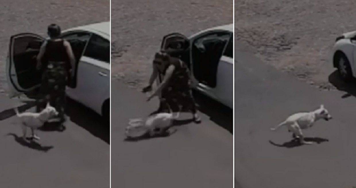 Una poliziotta vede la mamma deve passare con i nipotini e ha paura che i cani li aggrediscano.
